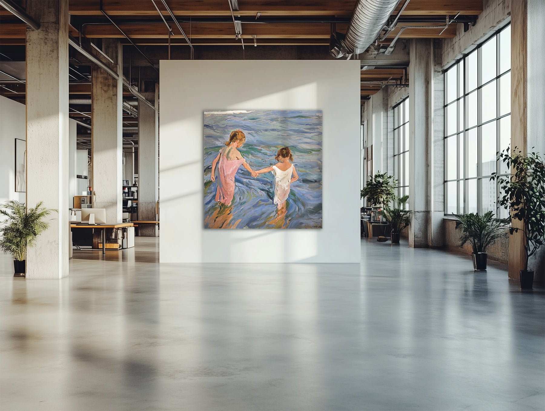 El pintor valenciano logra transmitir la frescura y la alegría de los niños en la arena, con un enfoque claro nacido del naturalismo. Este trabajo no solo refleja el interés continuo de Joaquín por los paisajes y las figuras humanas, sino que también representa un punto culminante en su exploración de la interacción entre el ser humano y su entorno, destacando la conexión emocional y sensorial con el paisaje marítimo. "Niñas en el mar" permanece como un testimonio del genio de Sorolla en capturar la transitoriedad de la luz y su efecto sobre el color y la forma, celebrado en todo el mundo.
